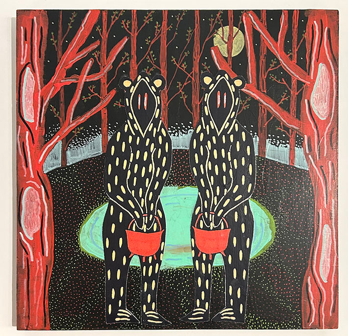 Beneath a full moon, two Guardians stand at the edge of a sacred clearing. They face the water together, mirroring one another, holding space for what is about to be received. The forest watches. The night listens.